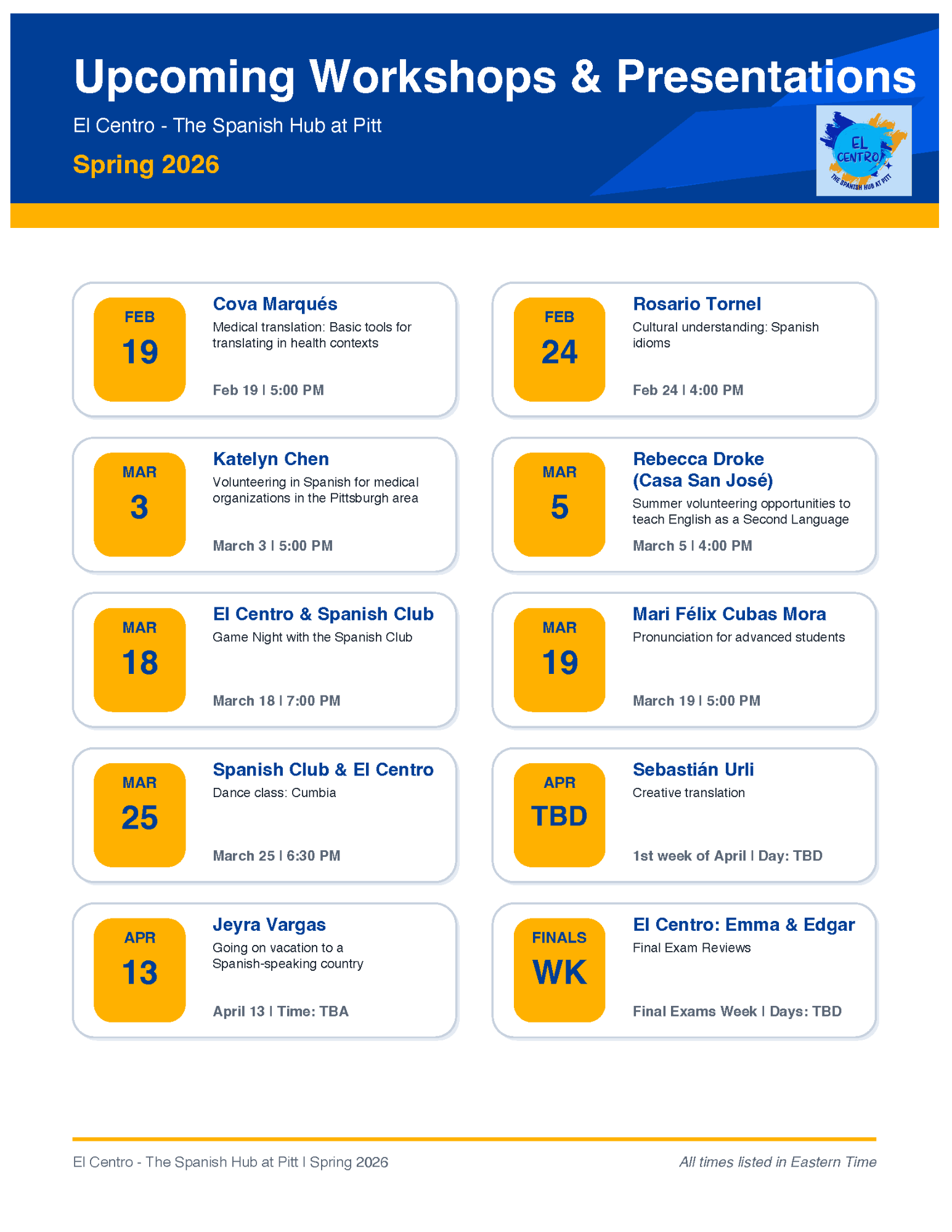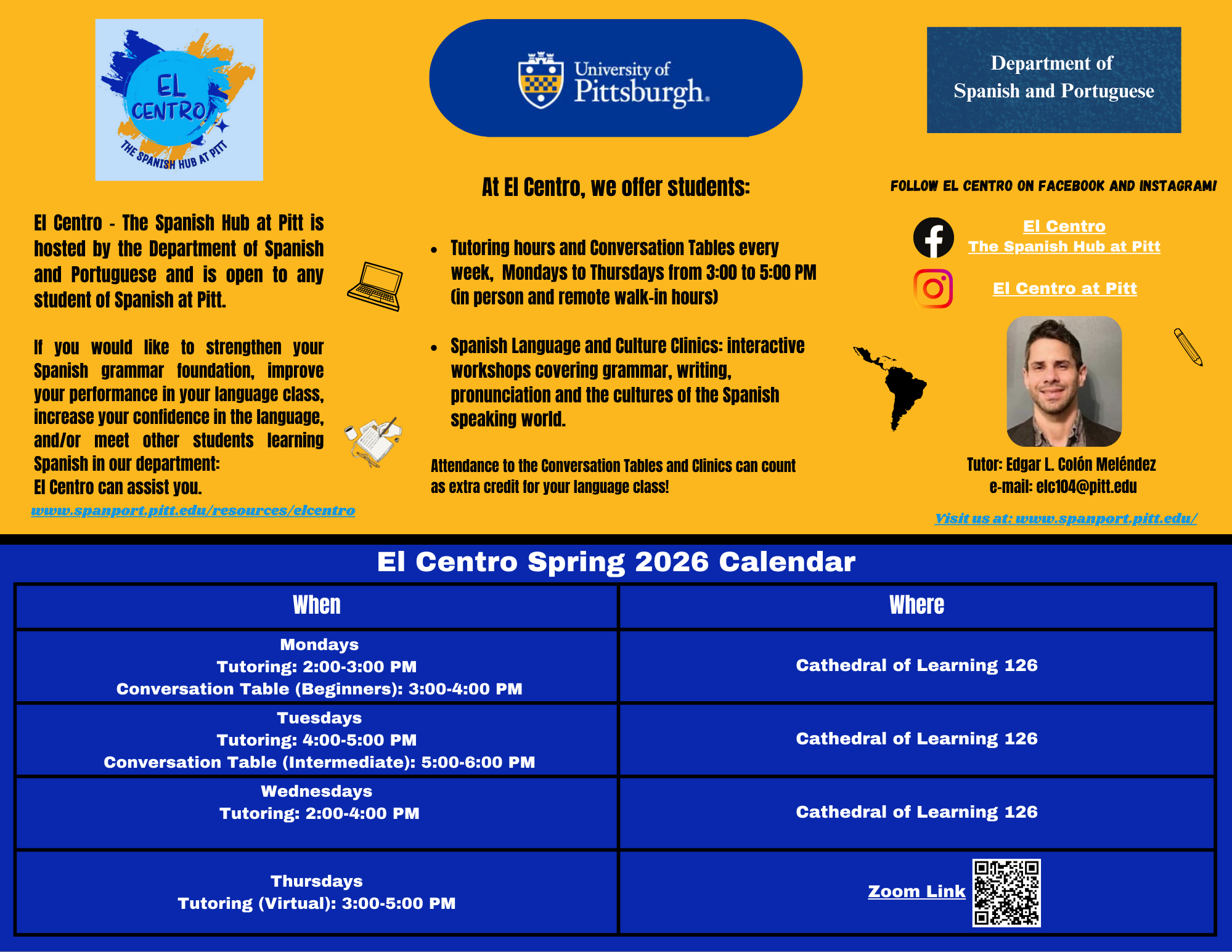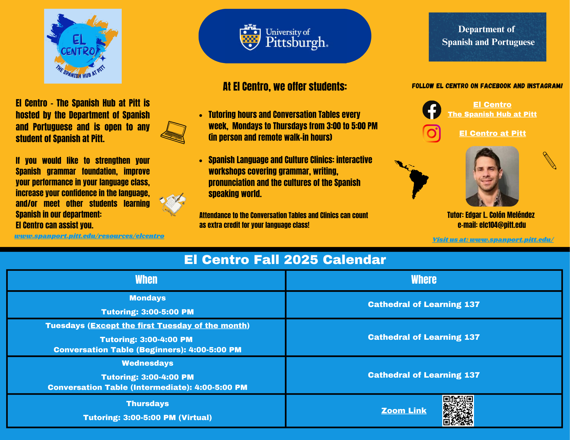 Facebook: El Centro The Spanish Hub at Pitt Instagram: El Centro at Pitt